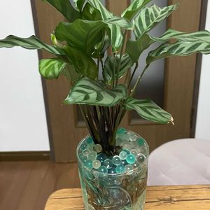 おはようございます😃 カラテア水耕栽培🚿 白い🤍根っこがすごい!!!! ゼリーボール3日に1回は 水を換えないと上のボールが 乾いて小さくなっていきます 冬にこれやると良くない気がする ボールの入れ替えだけしようかな?