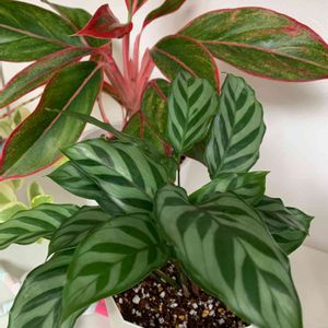 ストライプ柄がとても綺麗なカラテアを集めてみました🪴🪴🪴 ホワイトスターはカラテアの中でも白のストライプが特に美しい🌿 最近葉っぱに赤身も出てきました🍀