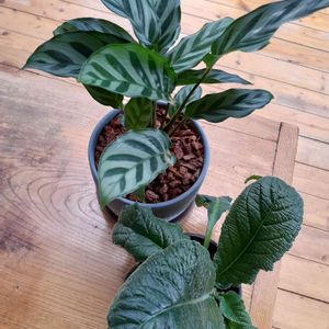 💚カラテア フレディ💚 噂の100均330円カラテア💚 に出会えました~︎⤴︎ ⤴︎(ˊᗜˋ)✨ お持ち帰りして、さっそく植え替え 小さなカラテアですが 大きく育ってくれるといいな~♡♡