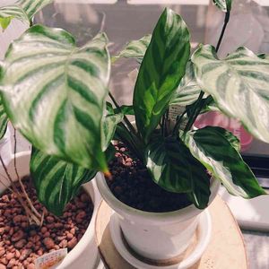 カラテアフレディ ホームセンターの ハイドロカルチャーのコーナーで 弱っていたところを発見👀! 以前から 葉の模様の美しい カラテアを お迎えしてみたいと 思っていたので 救出してきました💪 傷んだ根は切って 土に植えて様子を見て 1週間ほど。 元気になってきたかな?