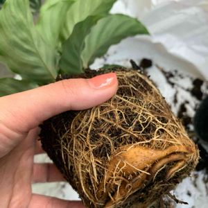 お迎えしてから2ヶ月 調子の悪かった🌱カラテア・フレディ きのう植え替えました₍₍ ( ๑॔˃̶◡ ˂̶๑॓)◞♡ フレディ、新しい葉っぱは出てくるんだけど 葉っぱが開く前に枯れちゃったり 開いても葉っぱの一部が枯れてたり せっかく開いた葉っぱがゴワついてたりでどーしよって思ってたの でよーく観察🌱🌱🌱 前から泥みたいな土が気になっててハダニも心配だったから植え替えることに🌿 カラテアを丸裸にするの初めてです(#^.^#) フレディ、根っこ太いのね❣️ 根っこ結構パンパンでなかなか土落ちず💦 頑張って落としてたら妙に太い根っこが 何?何??イモ?? あ!カラテアってイモ科だったから根っこにイモ出来たのかな? 植え替えにジャマだからイモ適当に切って 30分くらいメネデール水につけてから室内用観洋多肉の土に植え替えました🌿 後で調べたらカラテアってクズウコン科なんだ😅 じゃ根っこの膨らみはウコン? 切っちゃったけど大丈夫だったかな😆 植え替え成功しますように(๑^ ^๑)🌿