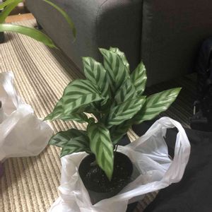 カラテアフレディ 去年1年調子上がらず💦 冬が心配でしたが、なんとか持ちこたえてくれた子😊 枯れた葉でボサボサだったので、綺麗にして植え替え🌱 今年は調子上げてくれるといいなぁ☺️