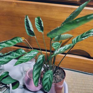 我が家に来て約1週間のカラテアから新芽が出ました。 植え付けてから2時間後くらいに一部の葉が丸まるトラブルが発生して焦りましたが、葉水をしたら元に戻りました。 冬の植え付けで不安でしたが、新芽が出てきて順調です。 室内が乾燥しがちなので毎日葉水してます。