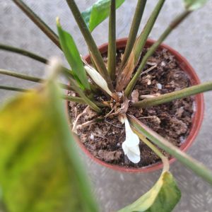 びっくり😲しました。 このコお花咲くのですね😲。 ダイソーからお迎えしたカラテア・フレディさんです。 白い何かを見つけて、よくよく見てみたらお花でした😲。 「カラテア 花」で検索🔍️してみましたが、情報があまり出てきませんでした。どうやら咲くのは珍しいようです😲。 ちなみに1日花ですが、3日連続で咲いてます。