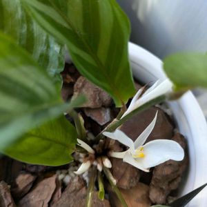 ダイソーのカラテア・フレディに花が。 白くて上品な花でした。