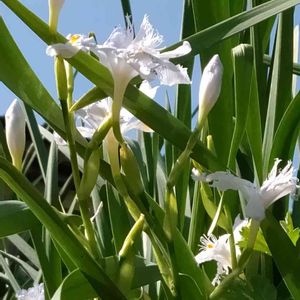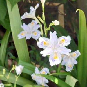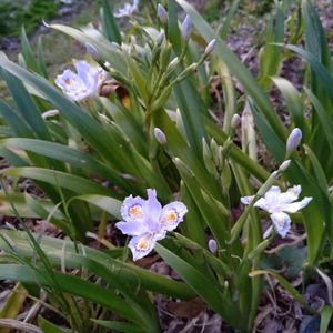 〓夕暮れの投稿便🚚〓 <♪しなやかに咲いて~~> 誰が歌ったのかは知りませんが 第一その様な歌は聴いたことがありませ~~ん😂🤭🤓 葉はやや厚く強い光沢があって垂れ気味で、 春になると茎を斜めに伸ばして、その先に白地に青い斑点が入る花を多数咲かせて下さるシャガ🌼🌿🌼🌿🌼🌿🌼🌿 和名:シャガ(射干) その他の名前:胡蝶花(こちょうか) 科名:アヤメ科 属名:アヤメ属 どちらかと言えば 木の根元周辺など、あまり日が差していない所に咲いています😅👍 いつも 🏷️チーム岐阜🍀投稿ありがとうございます😆🙌💕✨🍀💐…(*- -)(*_ _)ペコリ