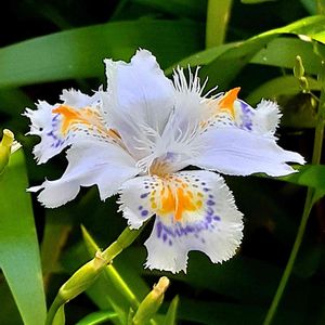 ~今日のお花~ シャガ 🏷️白い水曜日 🏷️素敵な水曜日 おはようございます 白い花弁に 黄色と紫色の模様が綺麗です 実家の裏山