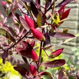 『エレモフィラ スイートルビー』♡♡ 長年いらっしゃるスイートルビー。オーストラリア原産、別名エミーブッシュ。 一昨年あたりかな?樹形が気に入らず✂️して整えて今に至る。……蕾が膨らんで開花も近い❤️このこ開花すると斑点模様と言いますか…なかなか個性的なお顔なの。
