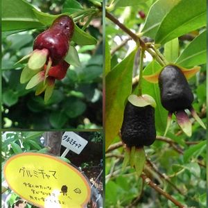 いつもの植物園で今回初めて見つけました!👀 グルミチャマ 沖縄ではグルミシャーマという似たようなものなのか同じなのかわかりませんがあるみたいですよ ネット検索するともっとまん丸なんですが、これはこの形で熟してるように見えます(º﹃º`) 実はとても美味しんですって!食べてみたいですね(*´﹃`*)