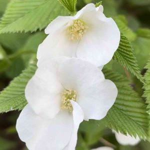 鹿野 二所山田神社 シロバナヤマブキ(白花山吹) バラ科 ヤマブキ属 シロヤマブキは庭に咲いているのですが シロバナヤマブキを見ることが できて感動‼️