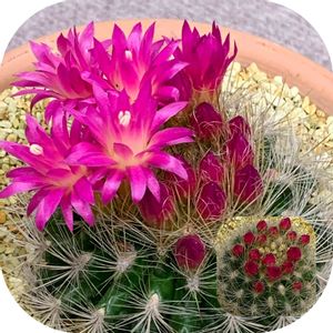 こんばんは🤗 久しぶりに、サボさんのお写真です🌵 こちらは、お花がとっても綺麗な 『銀翁玉』さん💕💕💕 一度に咲いたらボリューム満点だね🤗