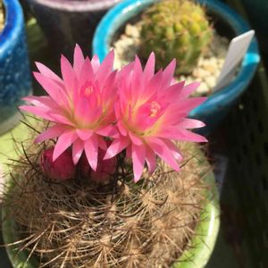 サボテン エリオシケ 旧ネオポルテリア 銀翁玉 やっと咲きました。😆 蕾4つ全部ではないですが😅 また楽しめます。🤗