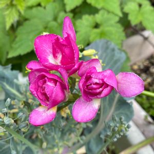 八重咲きフリージア咲きました❣️ 初めて育てました。 とってもいい香り(*˘ᗜ˘*)*°♡ グレコマさんももりもり〜💕