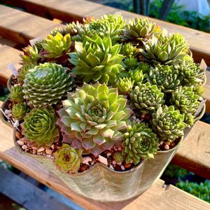 センペルビウム 🥗植え付けてから3年半経った大鉢♥️ ブリキの鉢は穴だらけ🤭