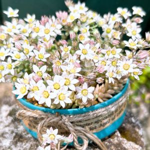 ボーボーになった寄せ植え💕可愛い 伸びてますねセダム 次回のタニパトではカットすると思いますが😂 伸びた感じ好き〜 トラカラー🩵love 事務的にたにくの花はカット✂️しまくったけど😅今朝無事に咲くことができた花発見💡切ってなかったんだねー。。可愛いですね💕 カットしました✂️けど