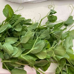 昨日の畑で 伸びすぎたえんどう豆の茎を✂️ オシャレなステーキに添えられているとか ウチはお浸しにして食べます バターソテーもいいかも って 今回は伸びすぎていて硬かった