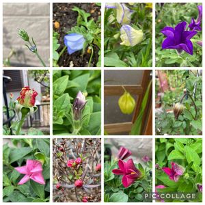 あまりにかわいい 🏷金曜日のつぼみたち 上段 左より ラベンダー、ネモフィラ、ビオラ、サフィニア💜 中段 左より 薔薇(ダブルデライト)るり風、サンダーソニア、クレマチス(サニーサイド) 下段 左よりチェリーピンク、ギョリュウバイ、ピーチキャンディ、小梅ちゃん、