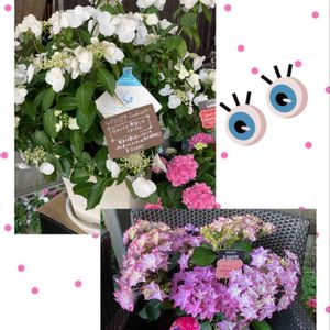 暑かったですね 今日は雨で肌寒くなるようです 皆さま 風邪などひきませんようにお気をつけて ところでまた お花屋さんに立ち寄りました 左はハイドランジア マジカル レッドアメジスト 花色が変化するってありました 右下は茜雲 花径が5〜6cmの サイズもかわいい😋 が どれもお値段が可愛くなかった 目の保養になりました