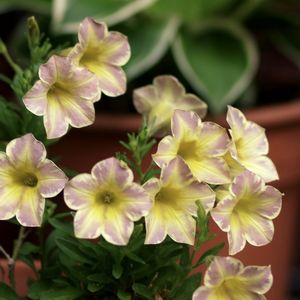 留守がちなので半日陰に置かれて💦 でも強いね、綺麗に咲いています💕🎶 フェアリースター ピンク、グレープ、クリーム