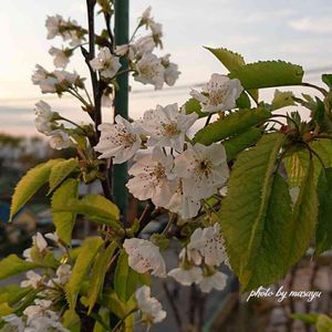 こんばんは😊 サクランボの花が咲きました。昨年は8個実になりました。今年はいくつ食べられるか楽しみです🎶