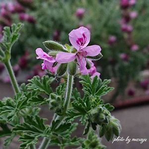 こんばんは😊 今日は久しぶりに寒い1日でしたね~ お水をあげるとローズっぽいいい香りがする、ローズゼラニウム初めて咲きました🎶