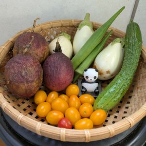 熱中症アラート発令されて暑い🥵日です😅 1️⃣今日の収穫野菜😍 最後のミニトマトになりました😁ナスとキュウリはもう少し収穫できそうです😄 2️⃣オクラの花が初の4輪咲き💞でも綺麗に咲いてくれてないです💦 3️⃣ツユクサ&メガネツユクサ🤩双子ちゃん率が多い✌ 4️⃣トケイソウの花が5輪咲いてます💕 計253輪になりました🤩 5️⃣トケイソウの実🤩半分にしたら中は空っぽでした💦🤣 ※パッションフルーツ残り3個シワシワに😂3時のおやつにそのままで食べてみるよ😋🤤😉