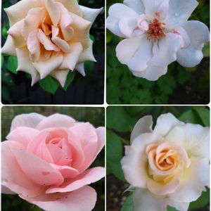 今朝のバラ🌹 ①バタースコッチ ②ドミニク・ロワゾー ③ヘリテージ ④アイスバーグ イースターバスケット 暑さに負けずポツンポツンと咲いてました 綺麗どころだけ🤳 今月中頃には夏剪定かな✂