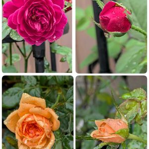 朝から☔️が降っています💦 1️⃣バラ🌹&雨粒🤩 2️⃣アイスバーグが万歳🙌 3️⃣トケイソウが8輪咲いたよ😬 4️⃣5️⃣コンスタンスエリオットの秒針が可愛いので😘2輪咲きました💞可愛いのでわけました👀