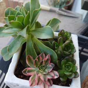 オヤジ祭り2024🏷️ クリスマス月間🏷️ 2のつく日は斑入りの日🏷️ などで投稿させて頂きます♪ 斑入りは手前の アオエニウム甜茶錦です 夏に小さくなってたけど 無事に夏越ししたのと 最近また少し 大きくなってきたのが嬉しい☺️ 葉っぱが薄っぺらくないから うっかりしてたけど アエオだから寒さ弱い系だよね? 室内に移動した方がいいかな💦 私の風邪の後の体調が 良くなってきたところに 今度は旦那が インフルエンザA型になり 今日で3日目です 完全には無理だけど 極力隔離生活してます うつらないといいんだけど とりあえず今年は クリスマスのチキン🍗は延期かな😅 皆様もどうぞ お気をつけてくださいね😷💦
