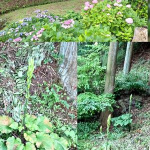 ② 長興寺散策 湧水からの小川沿いの参道を ゆっくり ゆっくり 散策しましたよ。 ガクアジサイやウバユリ オカトラノオ等が咲いていました。