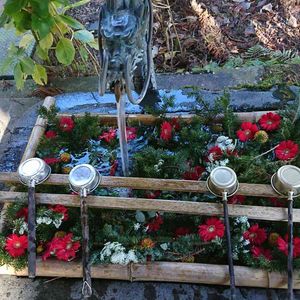 2022.2.16 晴れ風冷たい。 [寅の寺の郵便ポスト] お花じゃあ無いけど‥