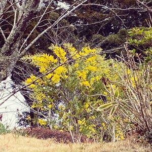 南房総市にある真野寺に咲いてるミモザです。 春を待つ蕾が膨らんできてる桜や雨の時期を待つ紫陽花を横目に辺りをパーっと明るく照らして一際目を惹きました。