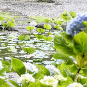 「古代蓮池」 お寺の古代蓮池側の紫陽花たちが咲き始めていました。 🏷咲き始めのお花たち 🏷水曜日は水色 🏷水辺の水曜日