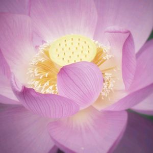 「古代蓮」 アップで撮影しました。 開き加減も魅了されてしまいます。 🏷木曜日は桃色