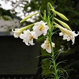 シンテッポウユリ(新鉄棒百合)。 テッポウユリとタカサゴユリの交配種。赤い線がないのでシンテッポウユリだと思います🤗🌸🌸 お寺に咲いてます🌸🌸💓