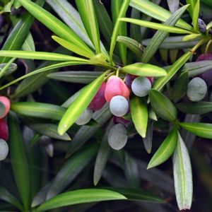 イヌマキ(犬槇)。マキ科の常緑樹。 赤い実の上に緑の実がくっついてます。 面白い実ですね❤️💚
