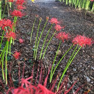今日のお花、ヒガンバナ(彼岸花)。 曼珠沙華や死人花等、別名が沢山あります。 お寺で、もう満開になってました🌸🤗