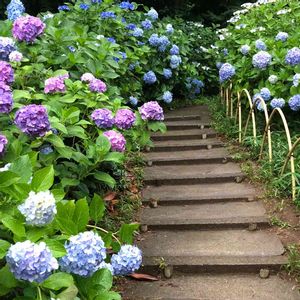 山の上のお寺の紫陽花まつり こんな綺麗な色もいい。 細い細い長い道を登って着きました🚙🗯↖️↙️🚙🗯