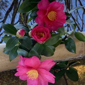 手水鉢のサザンカ。