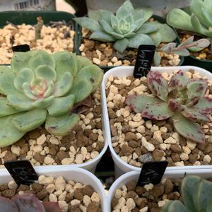 前回に引き続き、 2021リエール運試しセットの内容です 植え付けしてひと息ついた🌵 手前左から、 カヴァディ サラヒメ バブルビ、 ブラックホーク ピウラ クリスタルローズ レッドエボニー ビクトリー、 左上は既存の多肉 その隣が オメガ ドドランタリス 実際に見ると可愛い、 ほんと可愛い。 ポットはセリアのエコポット 土は今回いいかどうか分からないけど、セリアの鹿沼土、と元々ホムセンで買ってあった多肉の土みたいな初心者丸出しのチョイス。 混ぜたり鹿沼土のみだったり、いろいろしてみた。 既存の多肉。 最初に買った頃と比べると紅葉が取れてしまった。 家の中にずっと置いておくのはやっぱりだめだ……部屋も暖かいし… その反省を活かしたい、 でもここは北海道。 一晩外に置いておいたら凍ってしまう。 ひとまず夜は玄関に置いておくことにしようと決めた。 リエールさんの最高苗を私が引き継ぐ気持ちで頑張ろう𓀠