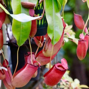 今日は蒸し暑かった💦やっとお隣との境に伸びたツルや枝を切ってサッパリ〜気持ちもスッキリ〜♪でも疲れたよ😞 ✿ ・* 初めてのウツボカズラ🌿❣️❣️ツボの色がめちゃ綺麗😍