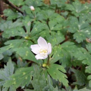 梅花黄蓮 白い萼に黄色い花弁。 スプーンのような花弁に蜜が溜まるのだそうです。 山道いっぱい広がって咲いていました。 五枚葉っぱ枯葉の下に隠れて花だけが見事に頭を出していました。 「らんまん」のオープニングのバイカオウレンに誘われてまた山歩き。山道には未だ雪が残っていました。 「みどりのまとめ」にしました。 🏷バイカオウレンからどうぞ〜