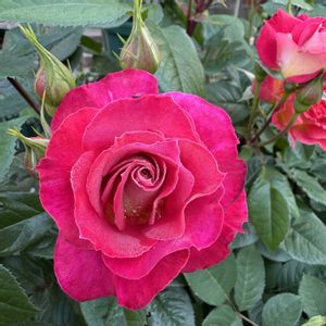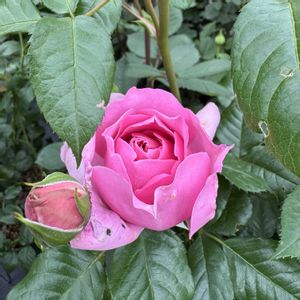 今日のバラ 『タペストリー』 昨年、新苗から育て始めたこの子。 途中で茎が黒く枯れ込んでしまう病気にかかってしまい、思い切って強めに切り戻したものの、正直、もうダメかも…と半ば諦めていました😥️ それでも諦めずに見守っていたら、見事に復活! 元気な姿を見せてくれて、本当に嬉しいです🌹️