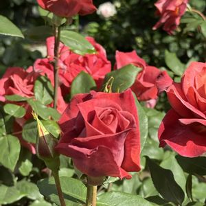 おはようございます☀️ やっと赤のピエールも開花🌹 ジュビリーセレブレーションは開花が進み可愛くなって来た🩷