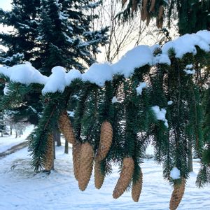 今朝…起きると真っ白な世界! 少し雪積もってました…❄️ 近所の公園の松の実です✨ サイズ的にバナナ🍌みたい…⁈ 大きな大きなイモムシ🐛みたい…⁈ 蝦夷松の木かな? トド松の木かな? 何の木かな? ???がいっぱいです…🤭 今の気温-1℃です🧊