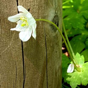 ご飯食べつつひと休み🍜 昼間出会った花を眺めつつ ニンマリ🤤 たくさんあってワクワク💕 早く見せたい、いや小出しにしよう 笑 これは一輪で咲いてたニリンソウ ちょっとお疲れ気味 今の私みたい お花みた元気でた