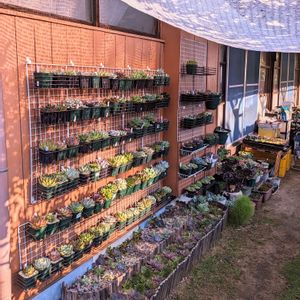 冬のあいだはキッチンワゴンは乗っていたエケベリアさん達を、壁面多肉棚に移動しました(笑)😁 ワゴンに乗せた時には全部棚に収まっていたはずなのに、何故か大量に鉢 が余りました(笑)ナゼダァ😵 まぁ色々ポチッとした結果なのですが(笑) と言うことで、壁面多肉棚増設しました(2枚目) こちらは家の奥の方なので、とりあえず胴切りした子や二軍の子置き場です(笑) また主人には白い目で見られてますがめげない私です(笑)😅