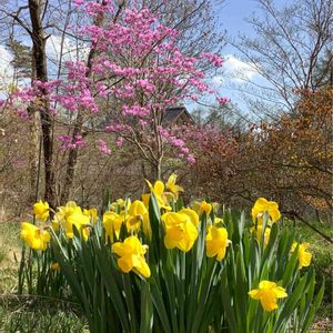 八ヶ岳の庭を水仙とミツバツツジが彩ってくれています😊 コラボが美しいです🌿