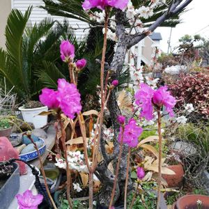 こんにちは!家の庭で咲いているミツバツツジの花です!こちら千葉県南部ではミツバツツジをイワツツジの名称でよんでいます!、 今年はいつもより咲くのが早いですね!。(^^)