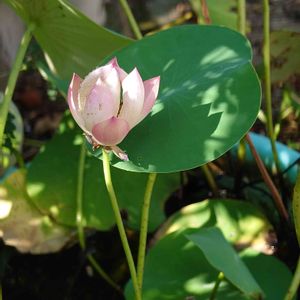 草に隠れて見えなかった茶碗蓮の蕾を見つけました〜小さな小さな蕾で無事に開くかしらと心配です